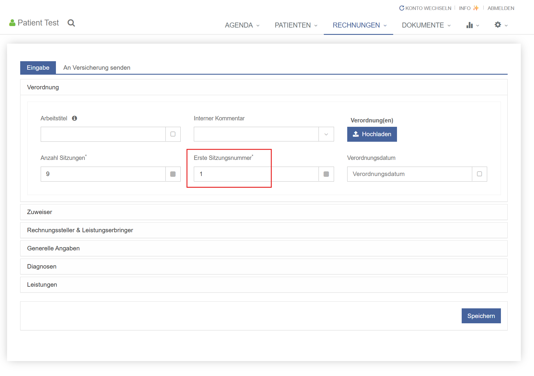 Wichtig dabei: Wenn ein Patient beispielsweise bereits 3 Sitzungen auf einer Verordnung hatte, wird im System Sitzung 4 eingetragen.